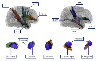 illustration of fiber connectivity between thalamus and cortical/subcortical subdivisions.