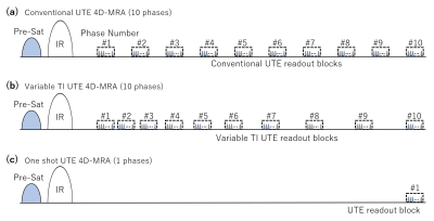 time from the previous blocks, (b) Variable TI UTE 4D-MRA, where the TI intervals