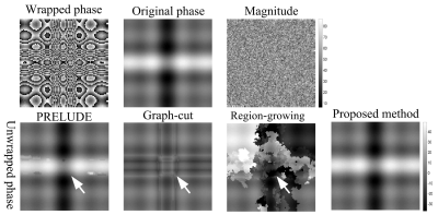 phase maps after unwrapping with each algorithm and background field removal.