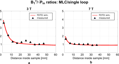 efficiency ratios between MLCs and SLCs along the central coil axis for 3T (a)