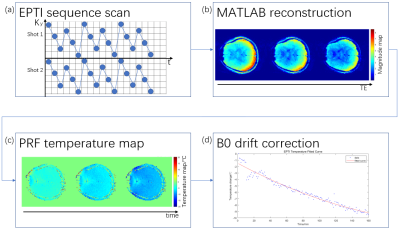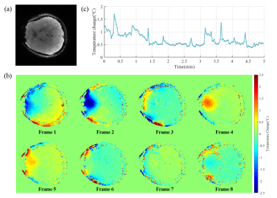 EPTI sequence. (b) Temperature distribution map of 8 continuous frames. The 8