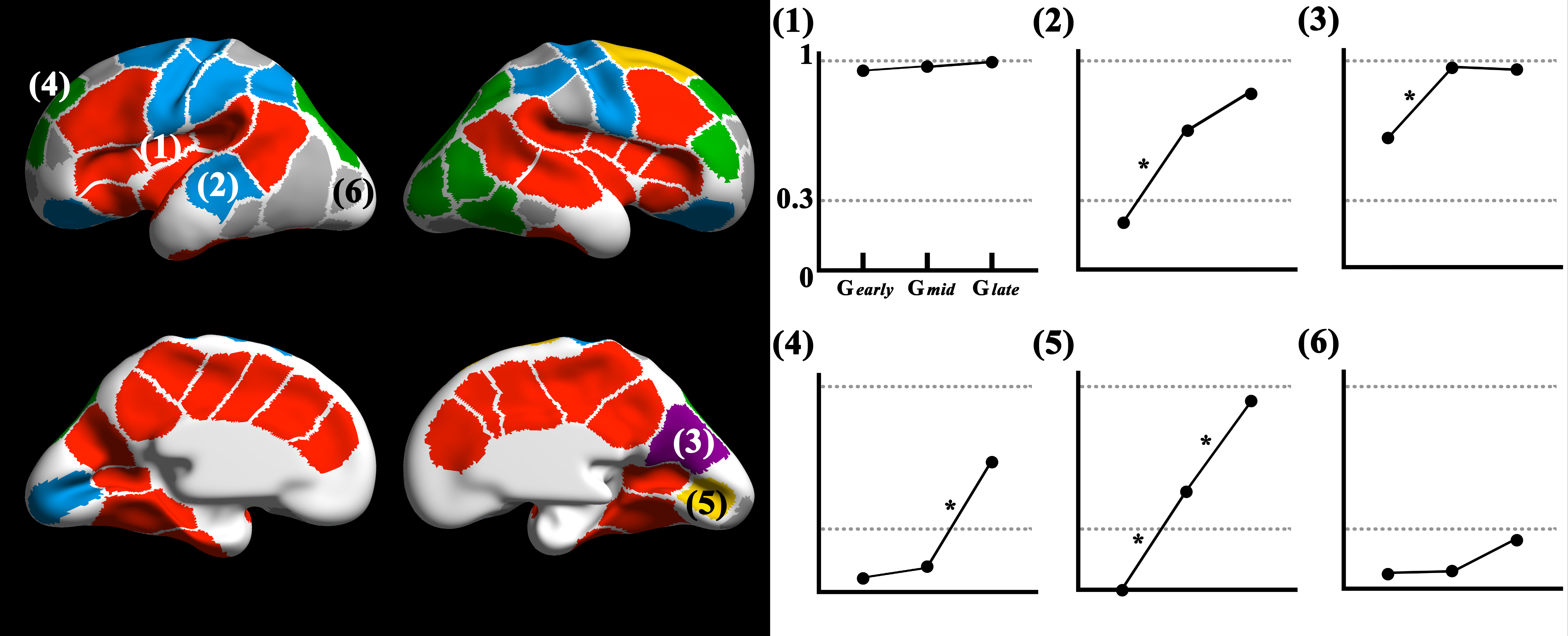 pits in the fetal brain showed temporally uniform distribution and regionally