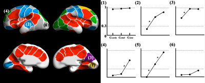 (4) left middle frontal a, (5) right calcarine b, and (6) left lateral