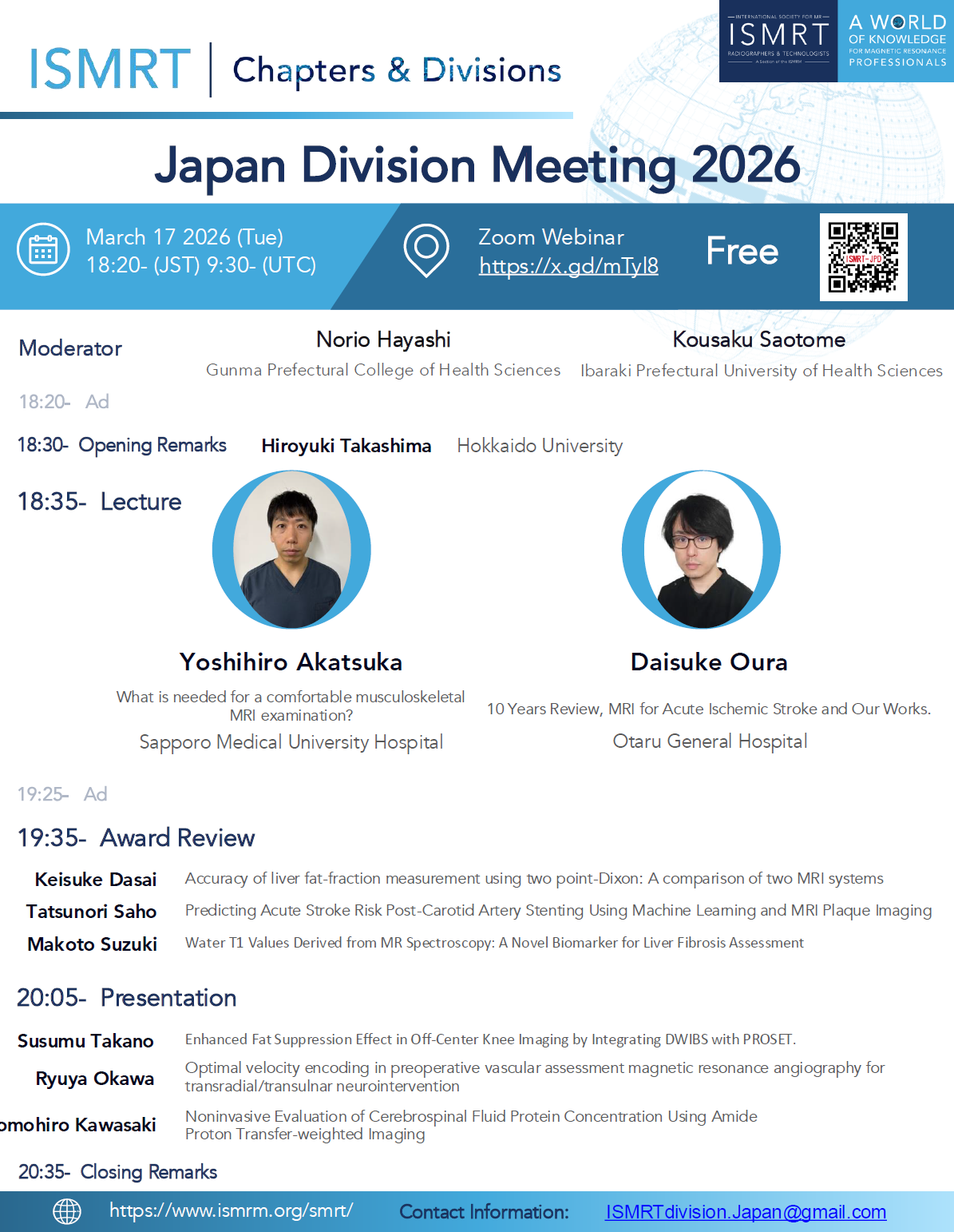 Contact ismrtjpc@gmail.com or ismrtdivision.japan@gmail.com for more information about this event.