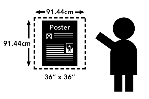 Each presenter is assigned a square space which measures 36 inches (91.44 cm) wide and 36 inches (91.44 cm) high. Posters exceeding these measurements and extending into areas reserved for other posters may be removed.